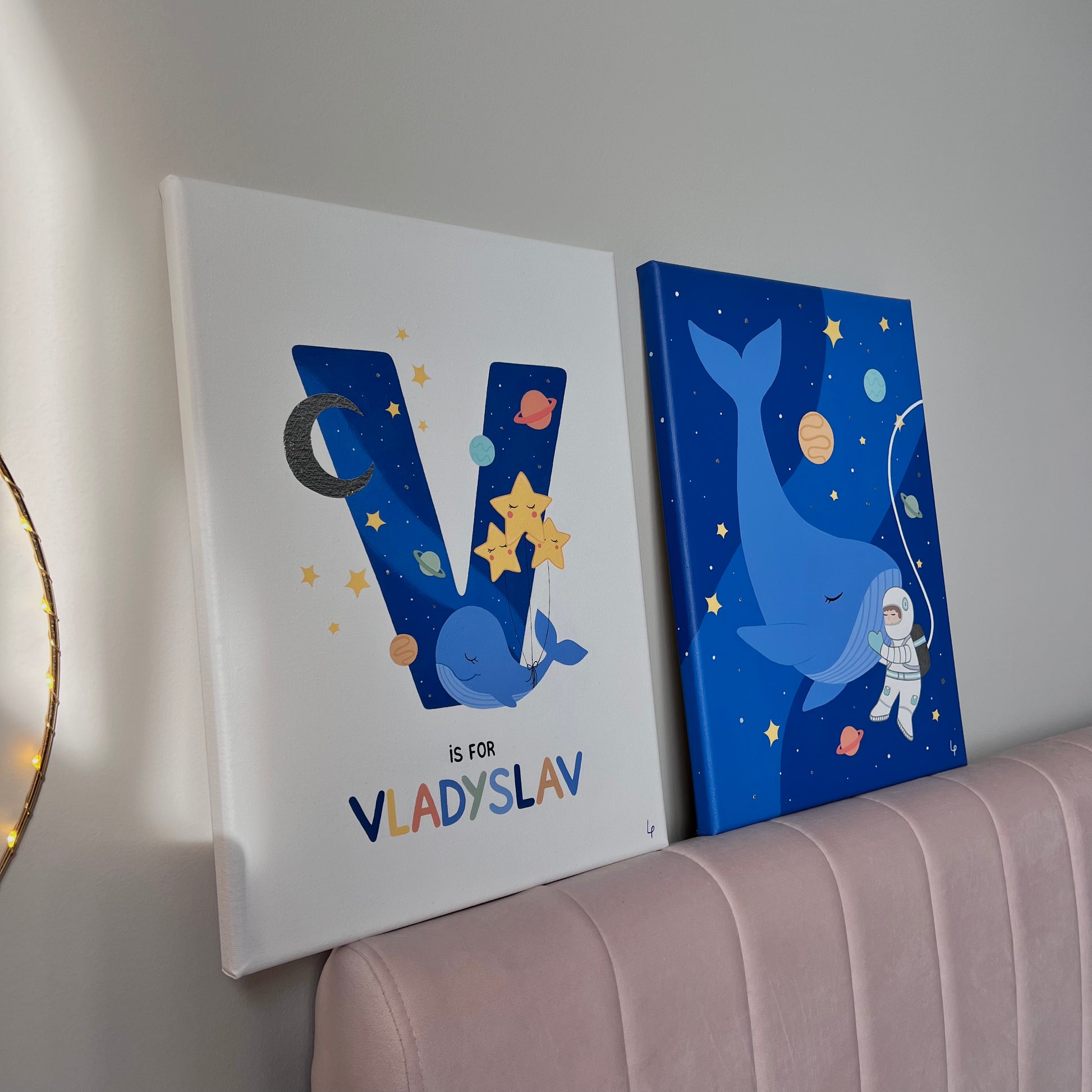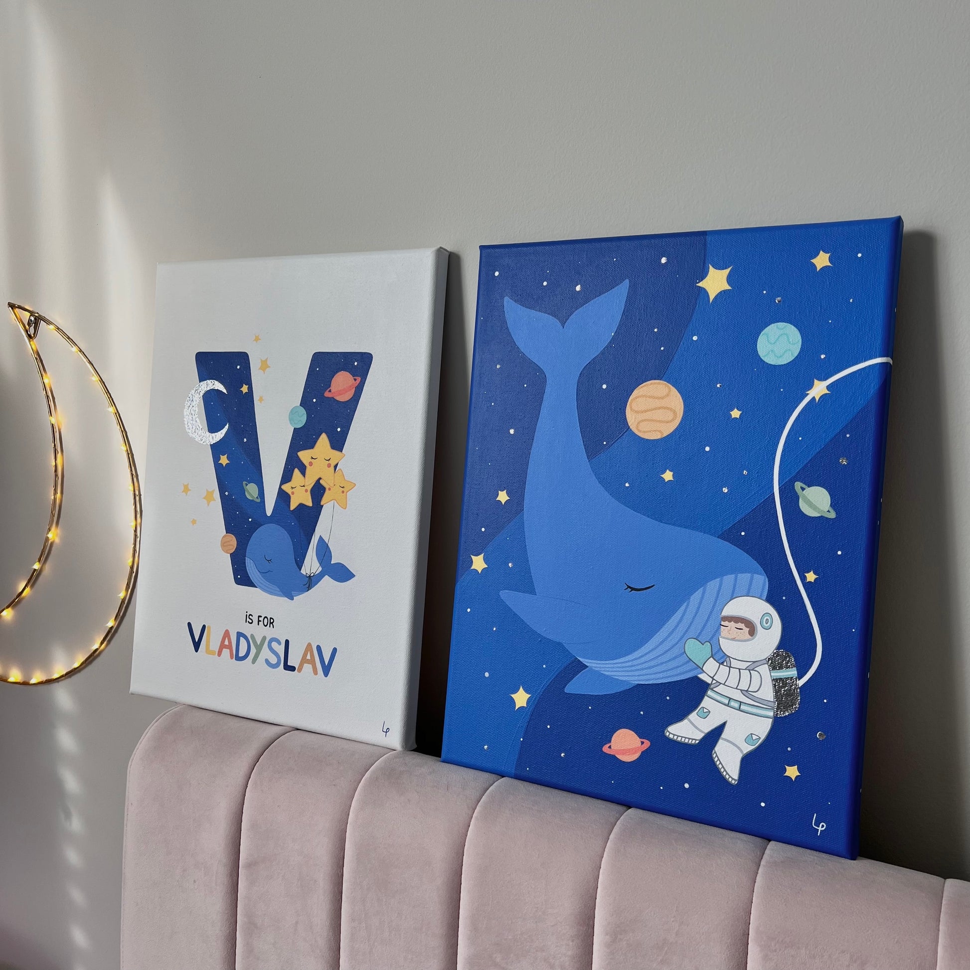 Double the magic — a custom 2-piece name art set, hand-painted just for your little dreamer.