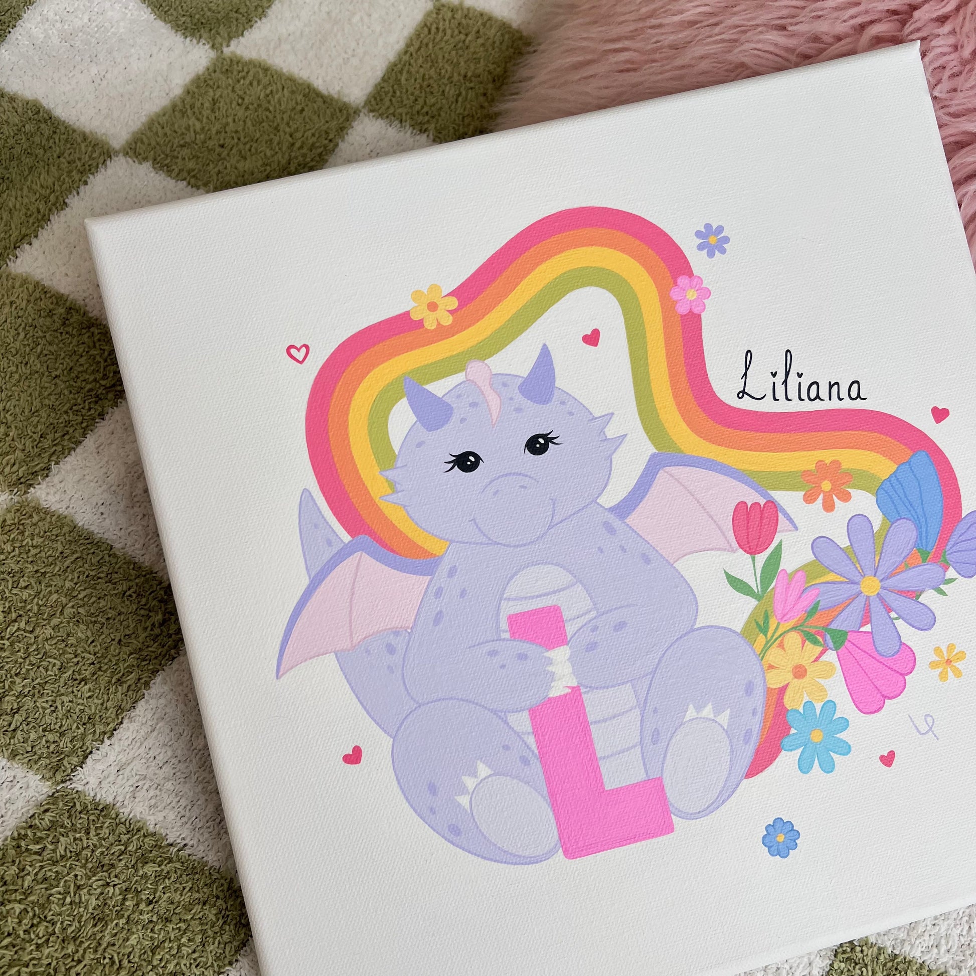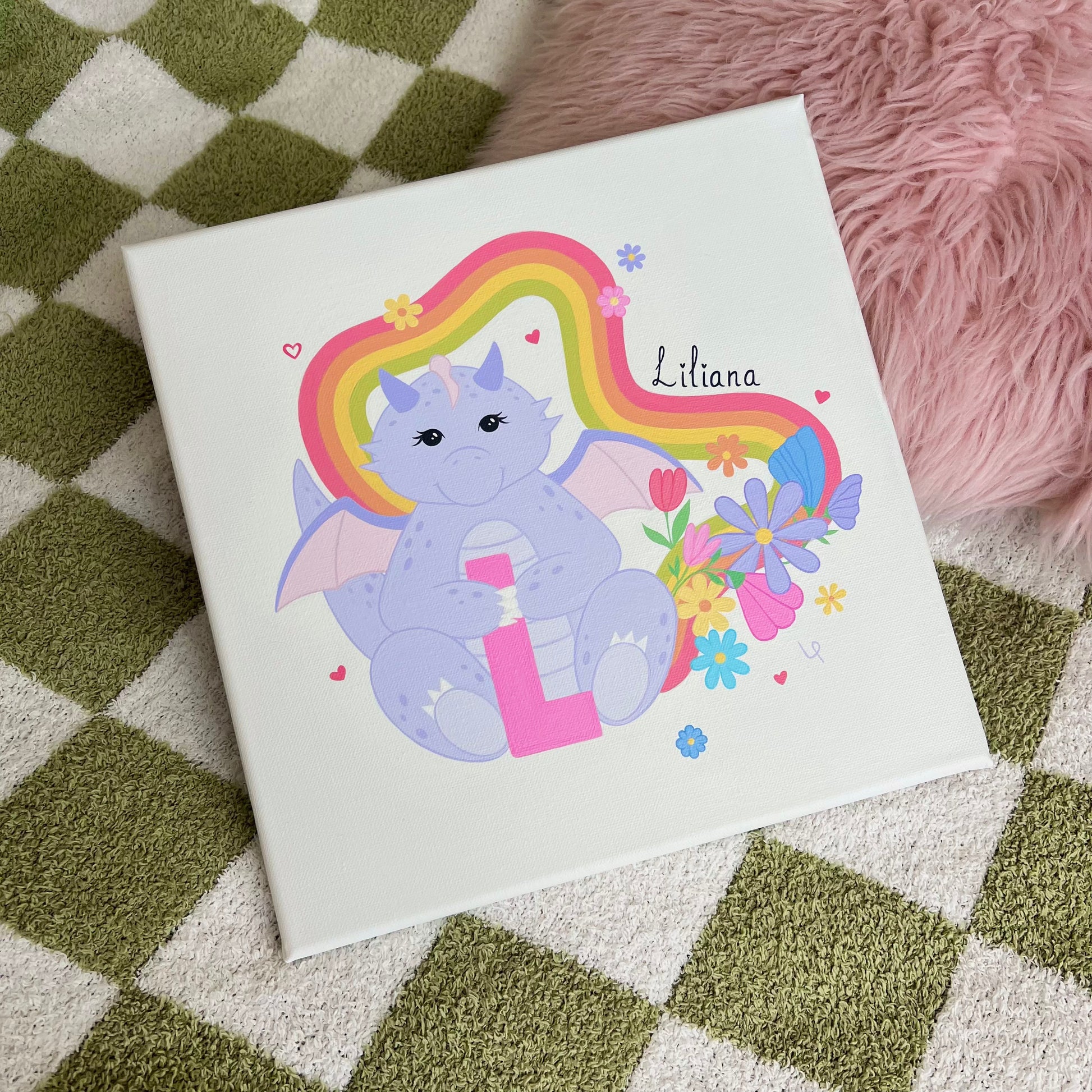 Add a little magic to your little one’s world with this sweet, hand-painted personalized name artwork, featuring a whimsical dragon holding the first letter of your child’s name. Their full name is lovingly included, making it a truly special keepsake.